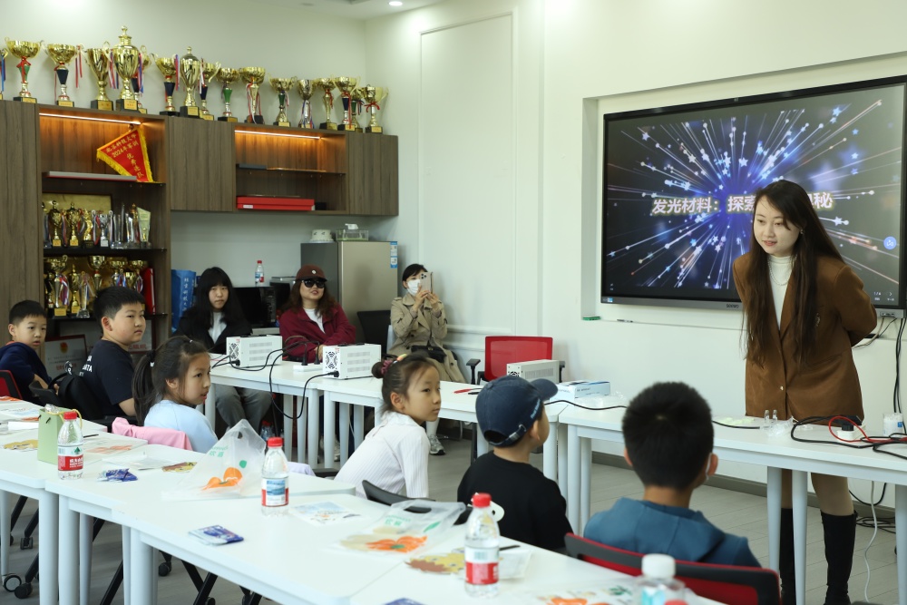 校友座谈会开展的同时,40余位校友家属在主楼311参与“神奇的荧光材料”科学体验活动。孩子们在志愿者指导下制作荧光晶体。活动结束后一位校友家属感叹:“这个活动既有趣味又有知识,孩子说将来也要考北科大!”